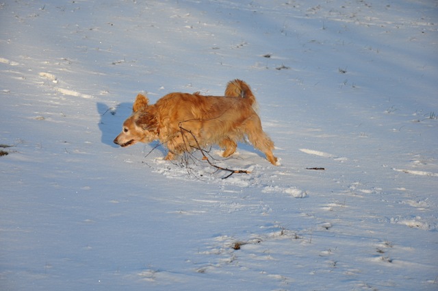 Det var vackert väder på helgerna och jag och Chip var ute och busade i snön. Han tycker det är väldigt konstigt att matte kan kasta en snöboll och att den bara försvinner.