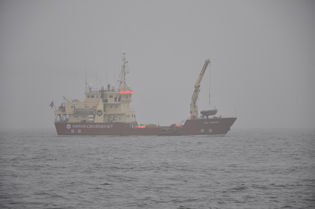 Vi har faktiskt varit ute och seglat! Lämnade FBK vid lunch på lördagen och gick tillbaka på söndag eftermiddag. Som vanligt blev målet Dragör. På väg tillbaka såg vi ett danskt fartyg som tränade manöver bord När vi kom på fotgraferings avstånd höll de på att lyfta ombord jollen igen.