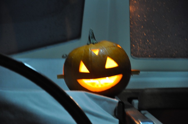 Halloween gubben fick husera i sittbrunnen i år. Förra året blåste han i sjön.