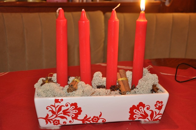 Men innan glöggpartyt skulle ju adventsljusstaken fram, och glöggmuggarna! Men var i hela friden har vi gömt prylarna. Båten gicks igenom från för till akter, men inga julprylar. Blev till att åka och handla nytt. Mycket irriterande.