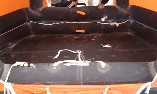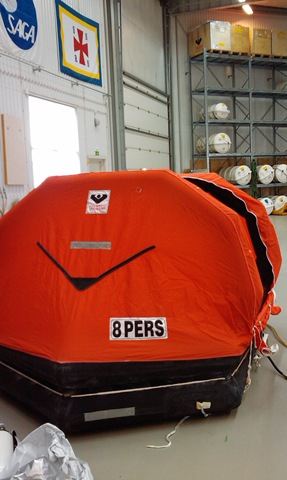 När man köper en livflotte är det lite att köpa grisen i säcken, man får ju inte se det man köper. Bara något som påstås vara likadan. Men nu fick vi vara med och se hur den ser ut och hur allt funkar och vad som finns medpackat.