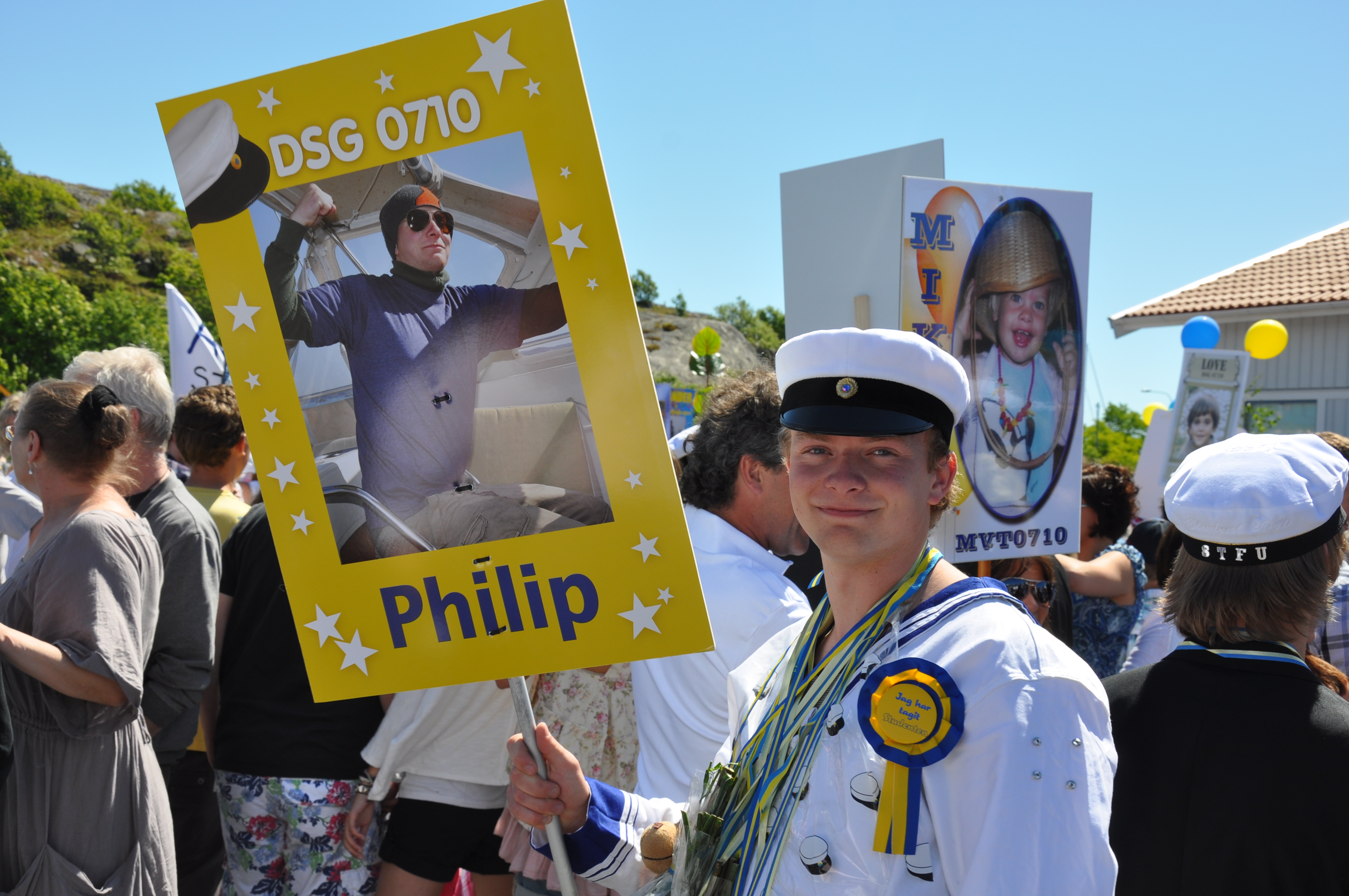 Vi har hunnit med att sparka ut Philip från skolan också. Han tog studenten på Öckerö Gymnasiet den 4 Juli, vi var naturligtvis på plats med plakat och blommor.