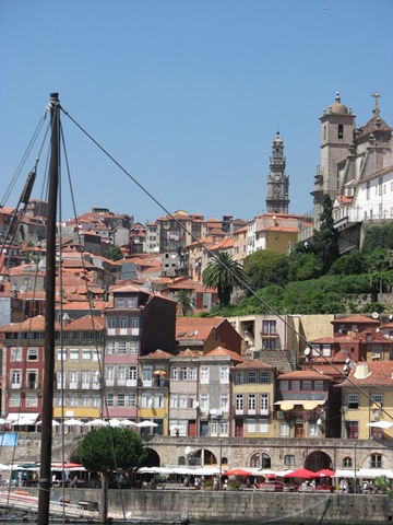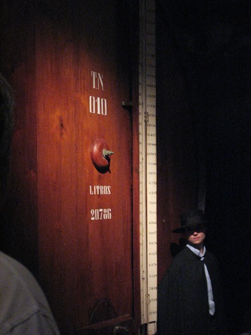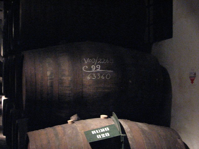Rätt håll det var alltså ner till floden Duoro för att komma till portivnshusen och gå på en visning och provsmakning. Vi hamnade på Sandeman’s, vi hade ca 10 olika hus att välja mellan men detta låg bra till och rundturen behövde vi bara vänta på i 30 minuter. Vi fick lära oss mycket om Sandeman’s historia och även hur man framställer portvin. Bl a att Portvin är ett ofärdigt vin eftersom man avbryter jäsningsprocessen genom att tillsätt ren alkohol. Därav att alkoholprocenten är högre i Portvin än i vanligt vin. Portvinet lagras på ekfat av varierande storlek drygt 20.000 liters fat till 220 liter fat.