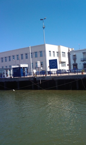 Väl inne på hamnkontoret blir vi väl mottagna. Vi frågar om det finns någon plats för oss till imorgon och vad det skulle kosta att ligga 3 månader i vinter. Jo hon hade 3 platser kvar och vi kunde få den ena. Så imorgon går vi tvärs över floden för 2 dagar. Sedan går vi nog vidare mot Cadiz. Vi kan ju inte lägga oss till ro för vintern redan.
