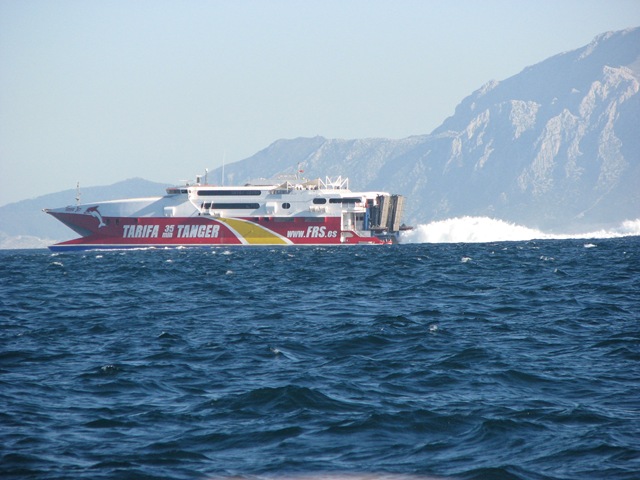 Att Gibraltarsund var smalt det visste vi (det ser man ju på sjökortet…..) men att det var så smalt hade vi inte föreställt oss. Så nu har vi sett en annan kontinent. Eller i allafall Afrikanska berg som vetter mot Gibraltar Sund. Det gick flera färjor mellan Gibraltar och Spanien till Marocko och till den spanska enklaven.