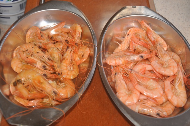 Men allt är i rått tillstånd. Dvs helt okokt. När vi köper räkor i Sverige så är de ju kokta redan ute på havet. Likaså i Portugal är de färdigkokta men antagligen kokta i osaltat vatten för de smakar absolut ingenting.