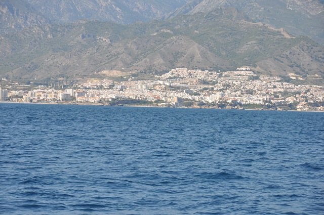 Så morgonen efter fortsatt vi till en ankarvik. La Herradura, som även visade sig vara en liten by som låg och slumrade vid foten på bergen. På väg dit passerade vi Nerja och så här ser Nerja ut från havet.