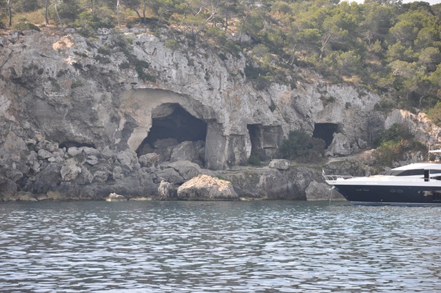 Det är tätt med ankarvikar och vi väljer en som ligger ganska nära, Portals Vells. En vik som enligt piloten bara var tillgänglig från vattnet. Men så var inte fallet. Numera så går det en väg till viken och de små stränderna var fulla av badgäster. Men å andra sidan så var även den lilla viken proppfull av båtar. Övervägande delen var motorbåtar. Stora sådana