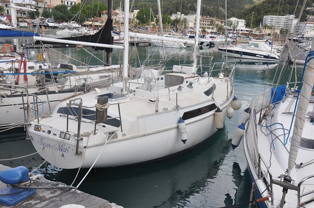 När vi kom in i Puerto Sóller hade vi ett lätt duggregn. Vi hade bestämt att ligga några nätter i hamn. Vilket bemötande vi fick! Denna och Almerimar är de trevligaste hamnarna vi varit i hittills. Marinero som möter oss i en jolle och visar oss vart vi ska. När vi backar in mot bryggan står han beredd att ta emot våra tampar. Flickan på hamnkontoret var precis lika trevlig och tillmötesgående. Så Marina Tramuntana de Puerto Sóller kan jag varmt rekommendera. Även om de var lite dyra. I Piloten står det fel web-adress den rätta är www.marinatramontana-portdesoller.es/ annars så ropar man upp dem på kanal 9 på VHFen.