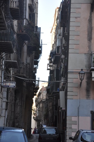 Vid 1830 tiden lämnade vi båten, utrustade med en kamera på axeln och portomän i fickan. Så småningom hittade vi upp i centrum och vi blev båda väldigt besvikna på Palermo. Husen förfallna och skitigt på gatorna.