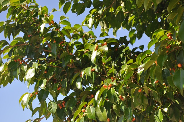 Entrén till marinan är kantad av benjaminfikusar. Inte visste jag att de kunde bära frukt!