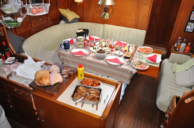 Julbordet blev nästan som hemma, vi lyckades få tag på det mesta vi behövde. OK, inläggningssill och skinka (som bara behövde griljeras) blev inköpta i Sverige men det andra hittade vi här nere. Jonas vill att jag påpekar att sillen som jag lade in var den godast jag någonsin gjort. (Känner ni hur generad jag blir?)