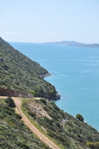 Bergarten här verkar vara sandsten, och verkar inte vara särskilt solid. Snarare en massa småsten som pressats ihop. Inte konstigt att det varnas för stenras på vägarna.