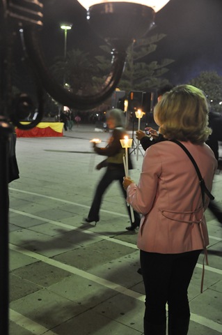 ljus tända och hjälpte till att tända övrigas ljus på torget.