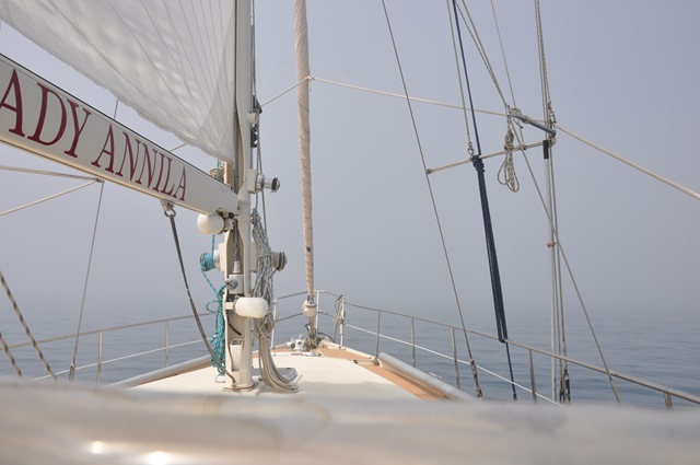 I de norra delarna har det varit riktigt eländigt väder med regn blåst och åska. Här där vi är, antingen i södra centrala Adriatiska eller norra södra Adriatiska har vi haft åska på avstånd en dag och dimma en dag, annars har vi haft mycket vackert väder.