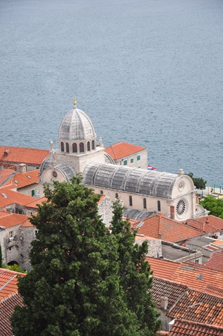 Även Sibenik är en stad som finns med på UNESCOs världsarvslista. Men Trogir och Dubrovnik är finare. Här är de flesta husen ganska slitna. Men de har en otroligt vacker katedral St. Jacobs kyrka. Här har verkligen stenhuggarna fått jobba för lönen. Dels så är stenskivorna i taket gjorda så att de hakar i varandra och sitter på plats utan någon cement.