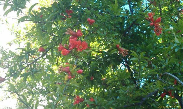 Jo det är Granatäppleträd i blom! Jättevackra.