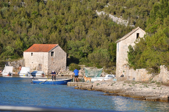 Många av vikarna är öde eller bara bebyggda med fiskebodar (på skånska fiskehoddor) Fast de kroatiska bodarna är mer hus än bodar.