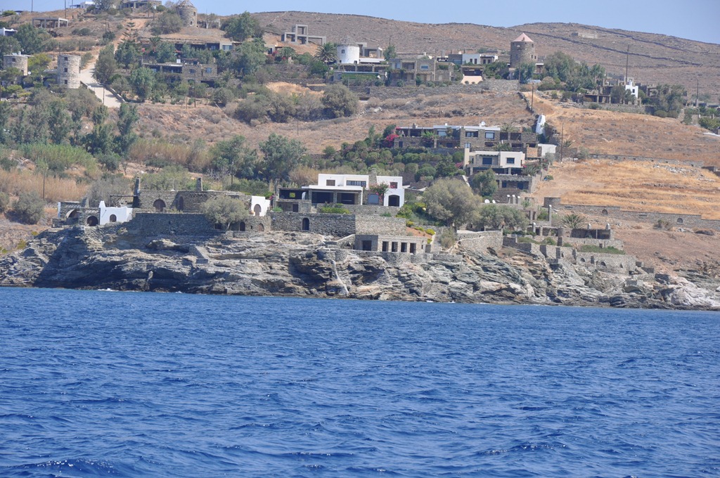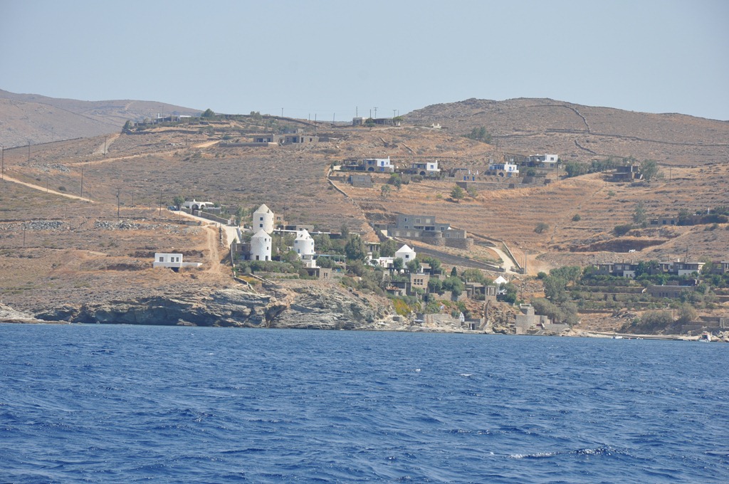 På Kea blev det en vik på sydvästra sidan, Ormos Kavia. Här såg vi två nya typer av hus, dels hus som var byggda som kopior av Grekiska vindmöllor