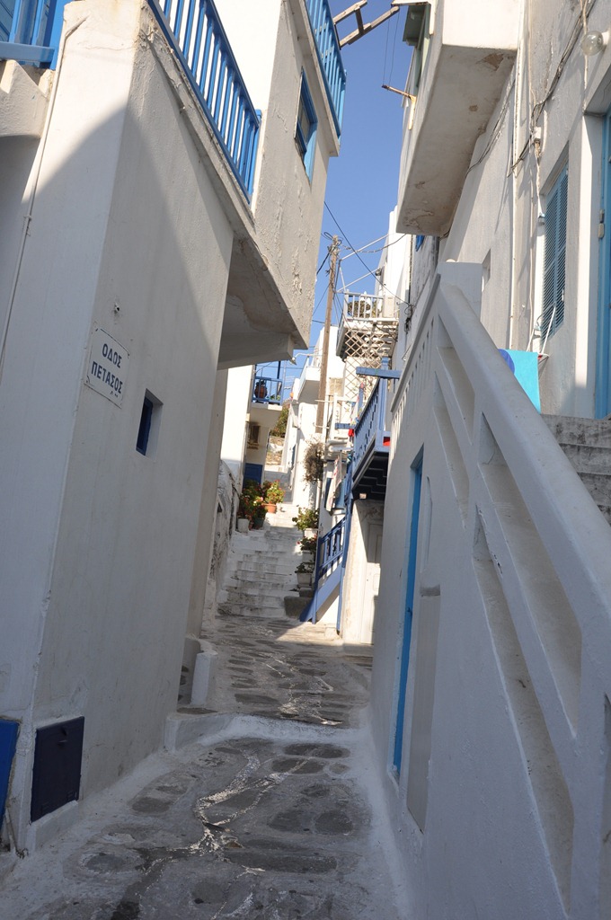 Själva Mykonos stad får man blandade känslor för. Otroligt charmig med sina gamla väl underhållna hus som ligger längs vindlande smala gränder och gator som rätt som det är öppnar upp sig i ett litet torg.