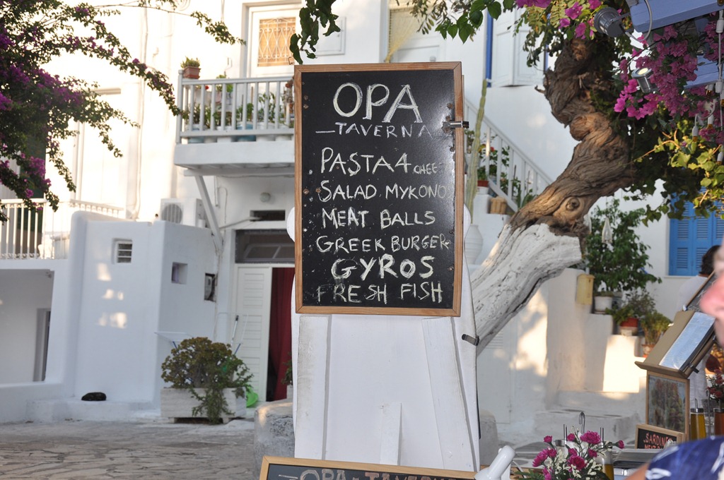 Mykonos har varit ett av våra mål, jag för att uppleva gamla minnen och för att få en för mig grekisk aperitif; Ouzou och träkolsgrillade bläckfiskarmar kryddade med lite vinäger. Himmelskt gott. Men tyvärr får jag leva på minnen, ingen bar/Ouzeria serverade detta längre. Snyft.