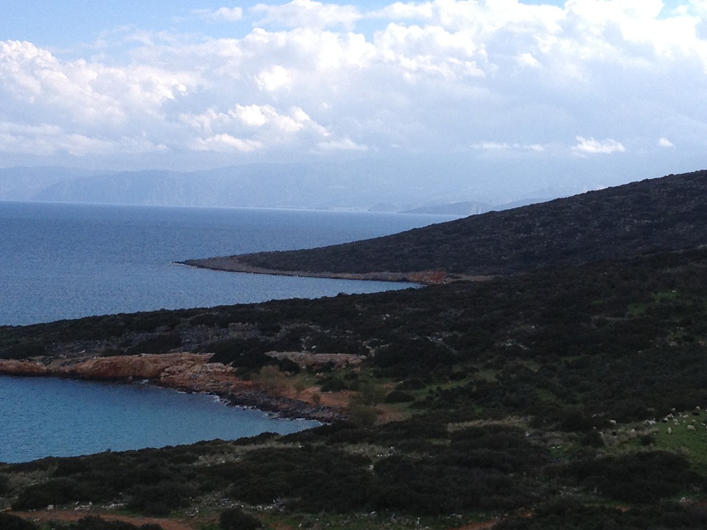 Utsikten var fantastisk trots att vi inte var så högt upp, ca 100 möh. Långt bort i bakgrunden ligger Aghios Nikolaos.