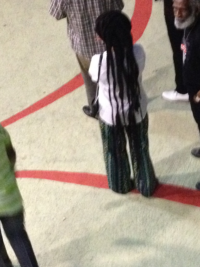 Nu vet jag varför många går om kring med mössa eller strumpebyxor på huvudet. Kolla killen i mitten på bilden. Han har stoppat in alla sina dreadlocks/rastaflätor i något som på närmare håll ser ut som en nylonstrumpa. Man kan ju undra hur långa flätor han har…..
