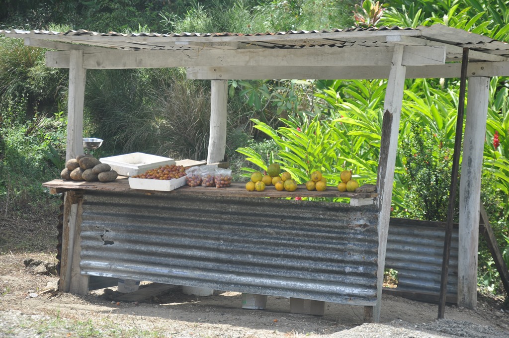 Vi kör på en glest befolkad väg, Jesse pratar och plötsligt tvärnitar han och ropar högt. “Han har det! Han ar det!”. Vi tittar lite förvånat på varandra och sedan ut genom fönstret. “Vem har vad?”. Vi står stilla vid ett litet fruktstånd där de har travat upp färska koksnötter, några Portugal, lite bananer osv. Inget speciellt vad vi kunde se.