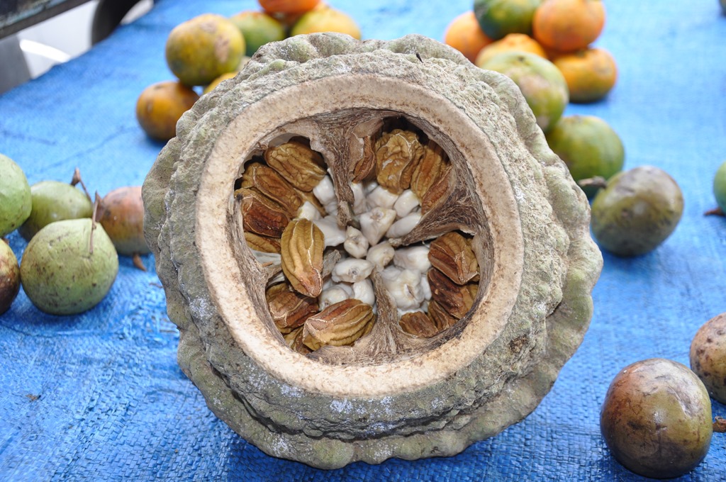 En Brazil Nut är den nöten som innehåller det som vi kallar Paranötter! De växer på träd som kan bli uppemot 50 meter höga och när de är mogna så öppnas de av sig själva och efter ett tag så ramlar nötterna ut. Men man kan plocka de stora nötterna innan de är helt mogna och låta dem mogna på marken. På den första bilden så kan man ana mönstret av en ring. Det är där som det öppnar sig och den runda delen kan tas av som ett lock. Inuti finns Paranötterna. Man pillrar ut den ljusbruna nöten med den ljusa köttiga delen. Tuggar ur den ljusa delen och skalar bort det ljusbruna. Kvar är själva paranöten. Smakade alldeles fantastiskt gott.