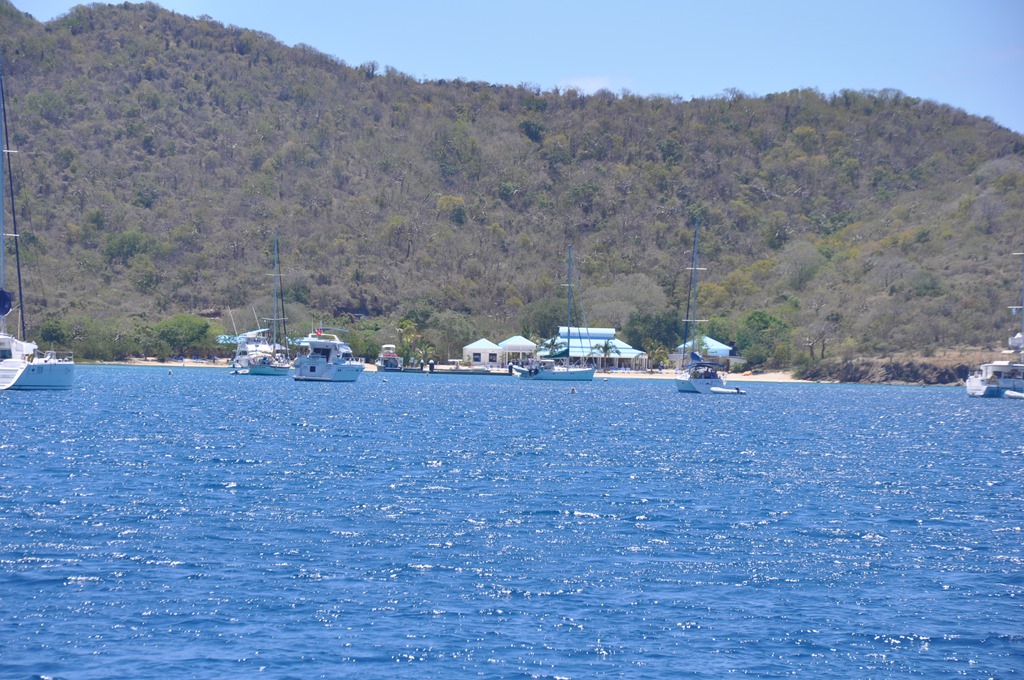 Vi checkade in i Gun Creek på Virgin Gorda och sedan tuffade vi iväg 1-2 sjömil tvärs över Gorda Sundet till ön Prickly Pear. Just området här runt Gorda Sundet har man massor av ankarvikar, bojar och marinor att välja mellan. Vill man vara mitt i smeten väljer man en boj utan för någon av resorterna annars droppar man ankaret i en lite mer avskild vik. Men man kan ändå ta jollen till någon av resorterna för att äta middag. Nu känner ju oss vid det här laget så det blev ankare.