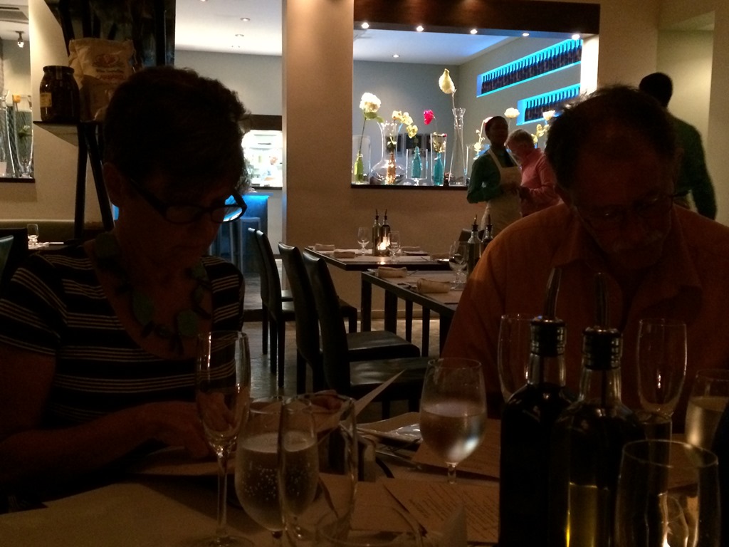 Taxin körde oss till en fin italiensk restaurang inne i Port of Spain. Taxi resan tog ca 30 min men när vi klev innanför dörrarna förflyttades vi mycket längre. En supermodernt inredd restaurang som andades lyx och god mat.