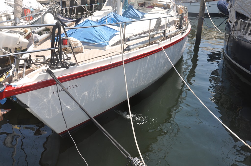 Först rugga upp ytan på den gamla färgen, sedan 1 lager med en special special grundfärg, 1 lager med en vanlig grundfärg, 3 lager av den röda med slipning mellan varje lager, gummilisten som ligger överst slipades, grundmålades 1 lager, slipades och sedan två lager vit färg så avslutningsvis och kronan på verket krom-tejpen.