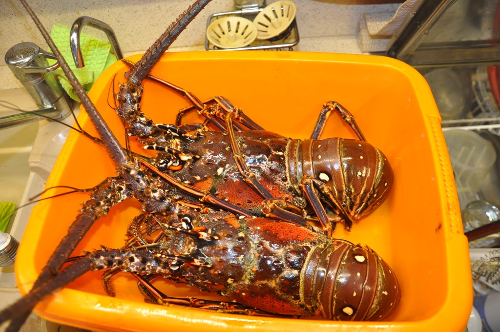 We bought lobsters yesterday from the locals. Yum!
