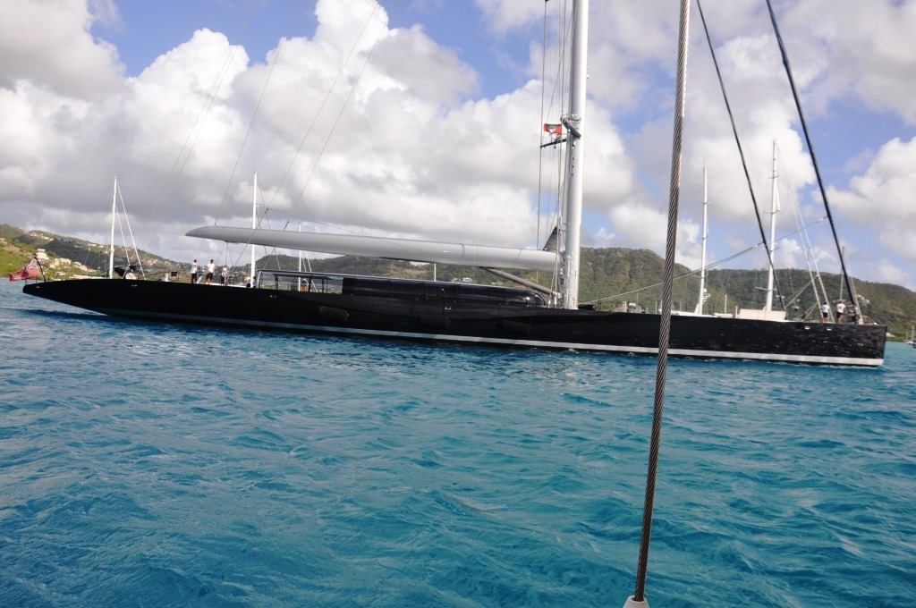 Ahimsa, 66 m lång. Är nog den största segelbåt vi någonsin sett.