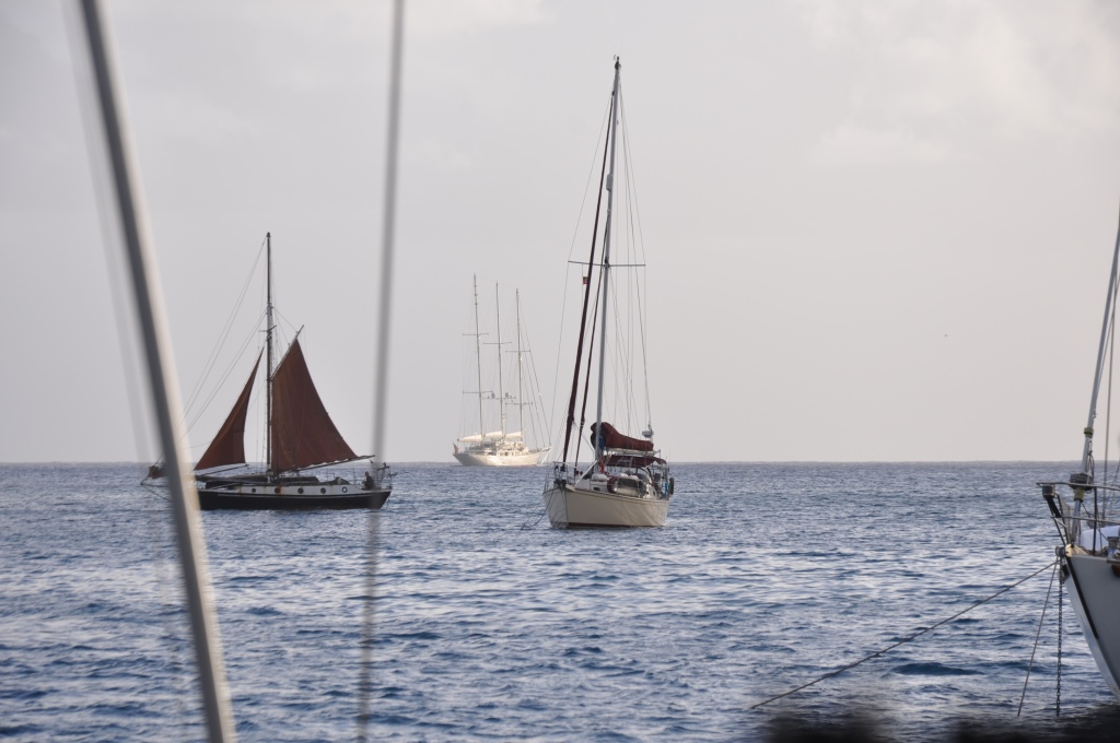 Vi har ankrat ganska strategiskt har det visat sig. Vi har full koll på alla båtar som lämnar marinan och viken. Om vi sitter i sittbrunnen vill säga. Tvärs igenom hela bukten går en farled in till marinan. Först tyckte vi att det var lite larvigt man såg ju marinan klart och tydligt och inga korallrev eller annat tjafs ivägen. Men nu förstår vi bättre. Dom är inte små båtarna som går till och från marinan. Just nu är det mest från av någon anledning.