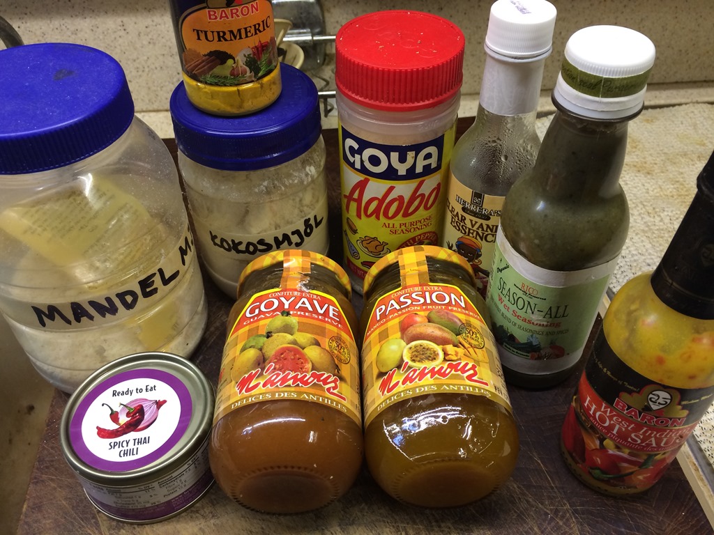 På Fisherman Friday i Gouyave, Grenada fick jag tag på en flytande all-krydda. Den hade hamnat långt in i skåpet och är än så länge otestad. Men jag tror att den passar bäst till fisk.