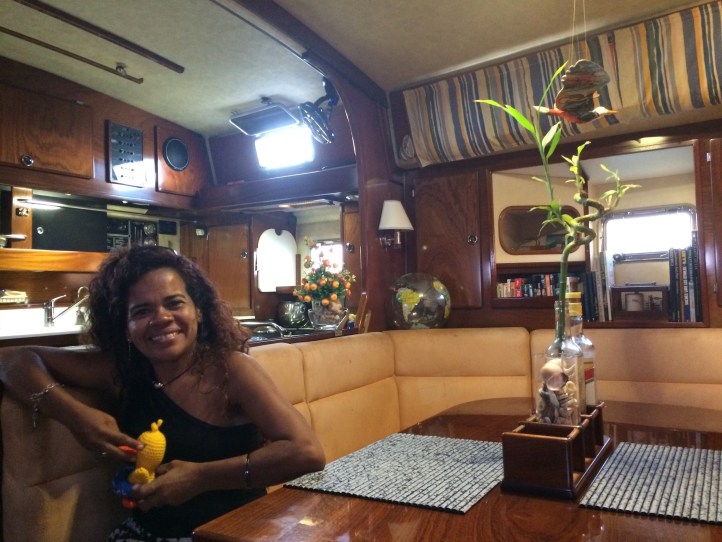 De har precis avslutat sin jordenruntsegling, så det är en båt som används. Får nog ta och satsa på lite blommor ombord iallafall och fönster i skrovet skulle kanske inte vara så dumt. Nu har vi fått massor av ideèr, tar nog lite tid att smälta allt.