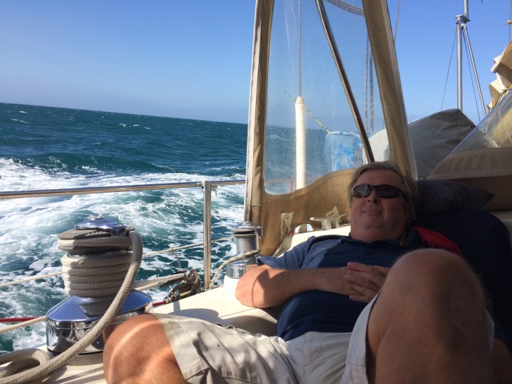 The last 19 hours were hours I glady would have been without. The forecast said winds 15-25 knots. Reality 20 to +50 knots. Braking waves that found every little opening in the cockpit canvas. Unbeliveble that the canvas is still in one piece.
