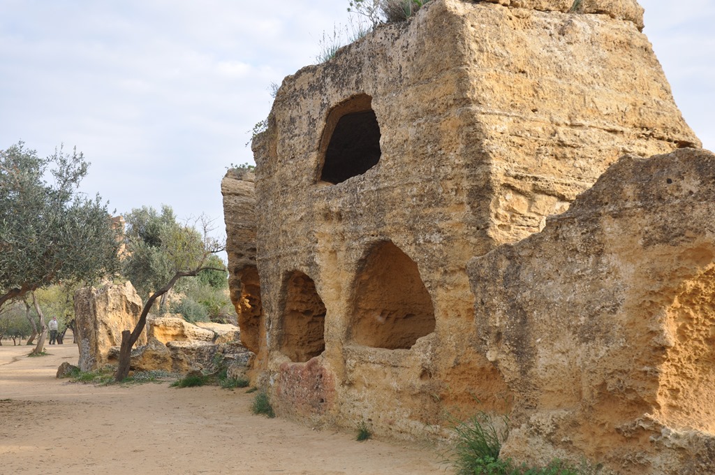 The original defensive wall was converted into burial chambers a few thousand years ago. Dorierna I think it was. Any more than me thinking of The Flintstones?
