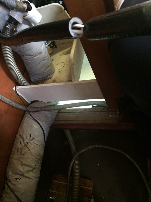 We let everything be open for a few hours to be able to make easy controls. Nope, no more water. This morning , a new check still bone dry. Yippee! the problem is solved. It was these small tubes that transports fresh water to the sink in the forepeak that was leaking. But no more, knock on wood.