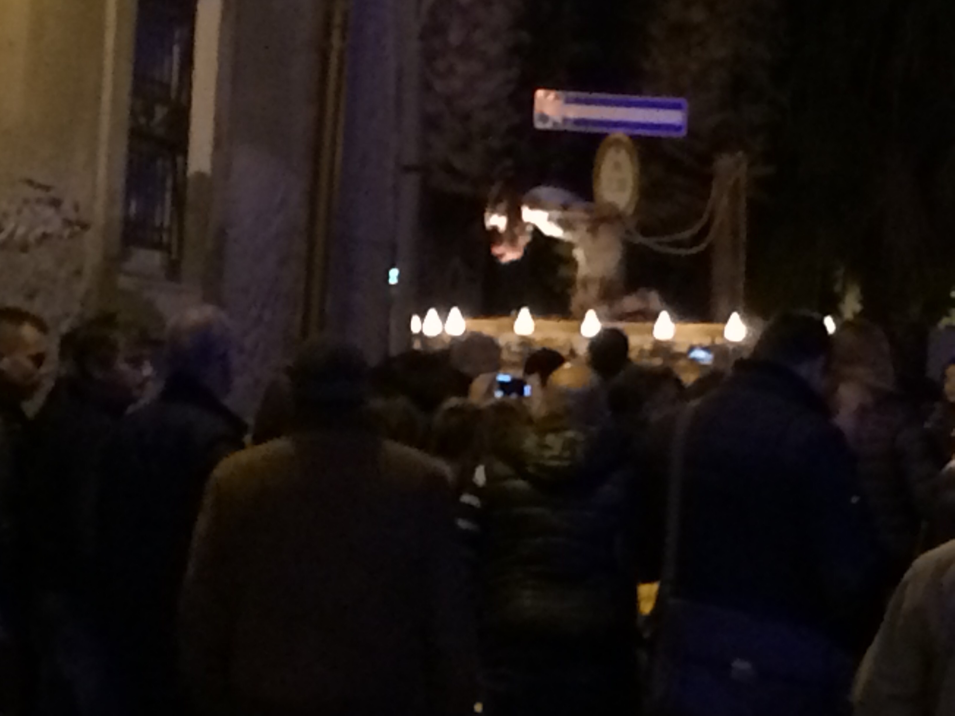 Påskfirandet har redan börjat och vi höll på att hamna mitt i en stor procession till Jungfru Marias ära. På vägen tillbaka till båten var det en procession med Jesus på väg till Golgata som vi precis missade.