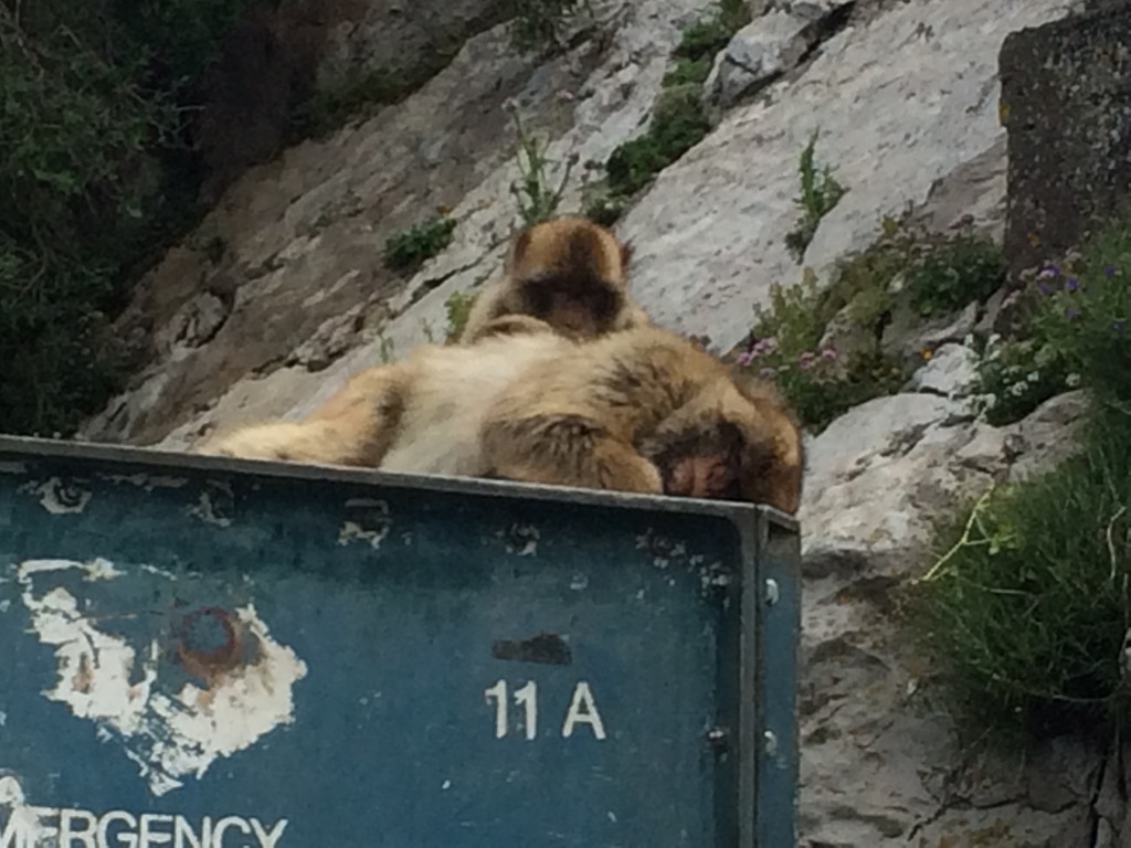 We went on to St. Michael’s Cave, a Stalactite cave of a larger model. Next stop was up to the cliff and Gibraltar’s famous monkeys. They are quite gregarious off, and jumping happily on visitors and looks for fleas in your hair, or just cling. Or use us as a stepping stone to something else. The latter happened to me. Stood and filmed a bunch monkey youngster who went around like dry skins. Suddenly my iPhone layed on the ground and a monkey jumped off. Ofcours my phone got a cracked glass, but only in one corner. typical. I can still use it.