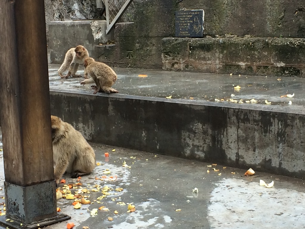 Vi åkte vidare till St Michaels Cave, en stalaktitgrotta modell större och sedan upp till Gibraltarklippans berömda apor. De är ganska så sällskapliga av sig, och hoppar gärna upp på oss besökare och letar loppor i håret, eller bara klänger. Eller använder oss som avstamp till något annat. Det senare råkade jag ut för. Stod och filmade ett gäng apbäbisar som for runt som torra skinn. Helt plötsligt låg min iPhone på marken och en apa skuttade iväg. Naturligtvis så sprack glaset, men bara i ena hörnan. typiskt.