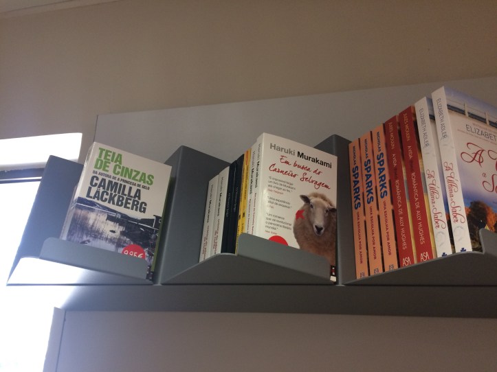 Postkontoren i Sverige och Portugal är ganska lika varandra. De saluför en massa prylar som man egentligen inte behöver. I Portugal har man utökat sortimentet med böcker. Står och slötittar på böckerna och hajjar till. En svensk författare! På portugisiska. Så förvånad jag blev