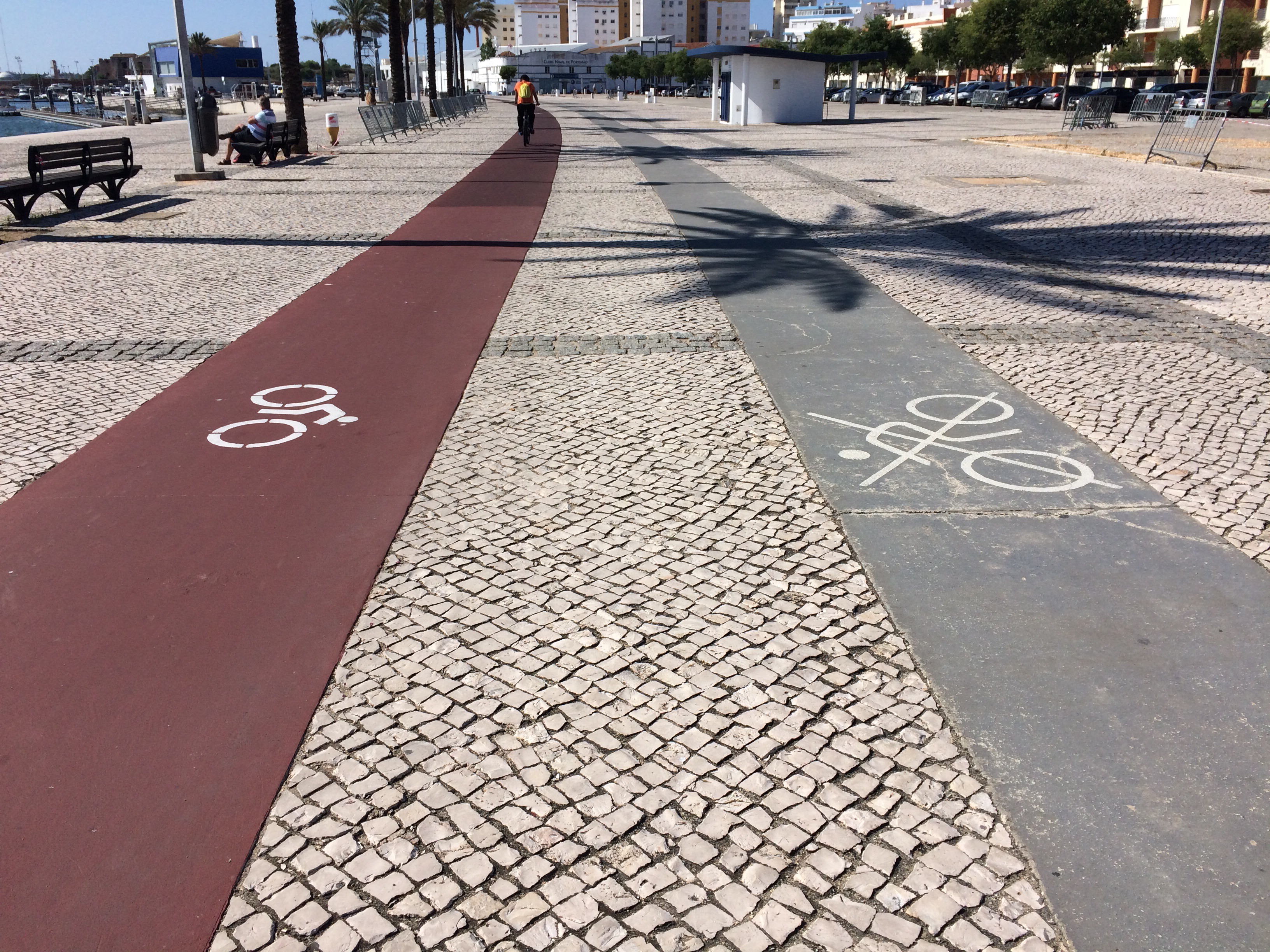 Strandpromenaden där vi satt är välbesökt på förmiddagarna. Många som, joggar, power walkar eller cyklar. Görstår dem för det är härlig miljö och bilfritt. Kommunen uppmuntrar till både cykling och promenader. Man har runt nästan hela stan gjort gångbanor och cykel banor.