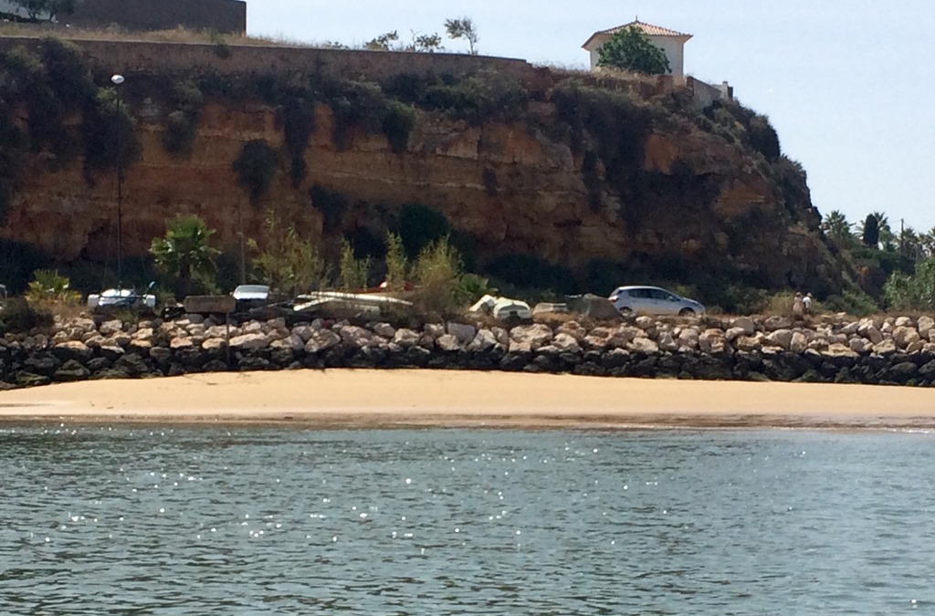 We were on the way to Ferragudo with garbage, drove very very close to the beach with our little Dinghy for not being in the way or get in the way. Low tide as it was, did not make things easier. We had very low water and then the river gets quite narrow. As we approached we saw that there was more space than we thought. But they are impressive boats.