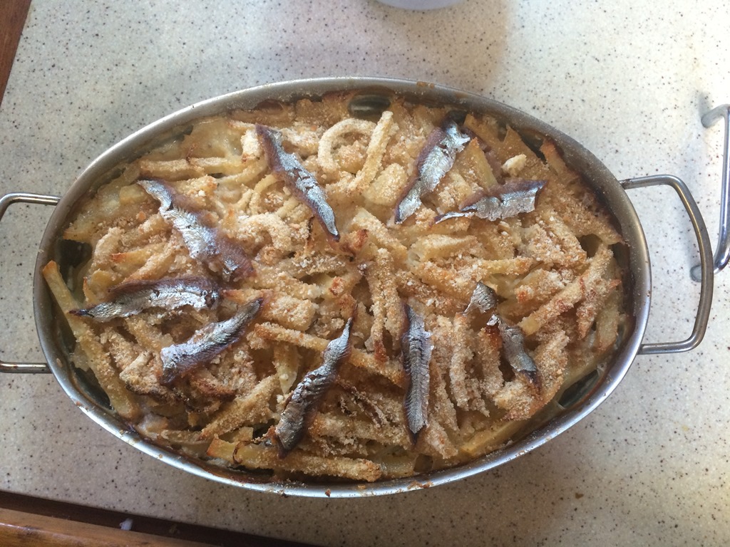 Ansjovis hade snälla vänner med sig i våras och tidigare i somras, så en Jansson har stått i ugnen idag och spridit underbara dofter i båten.