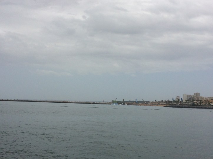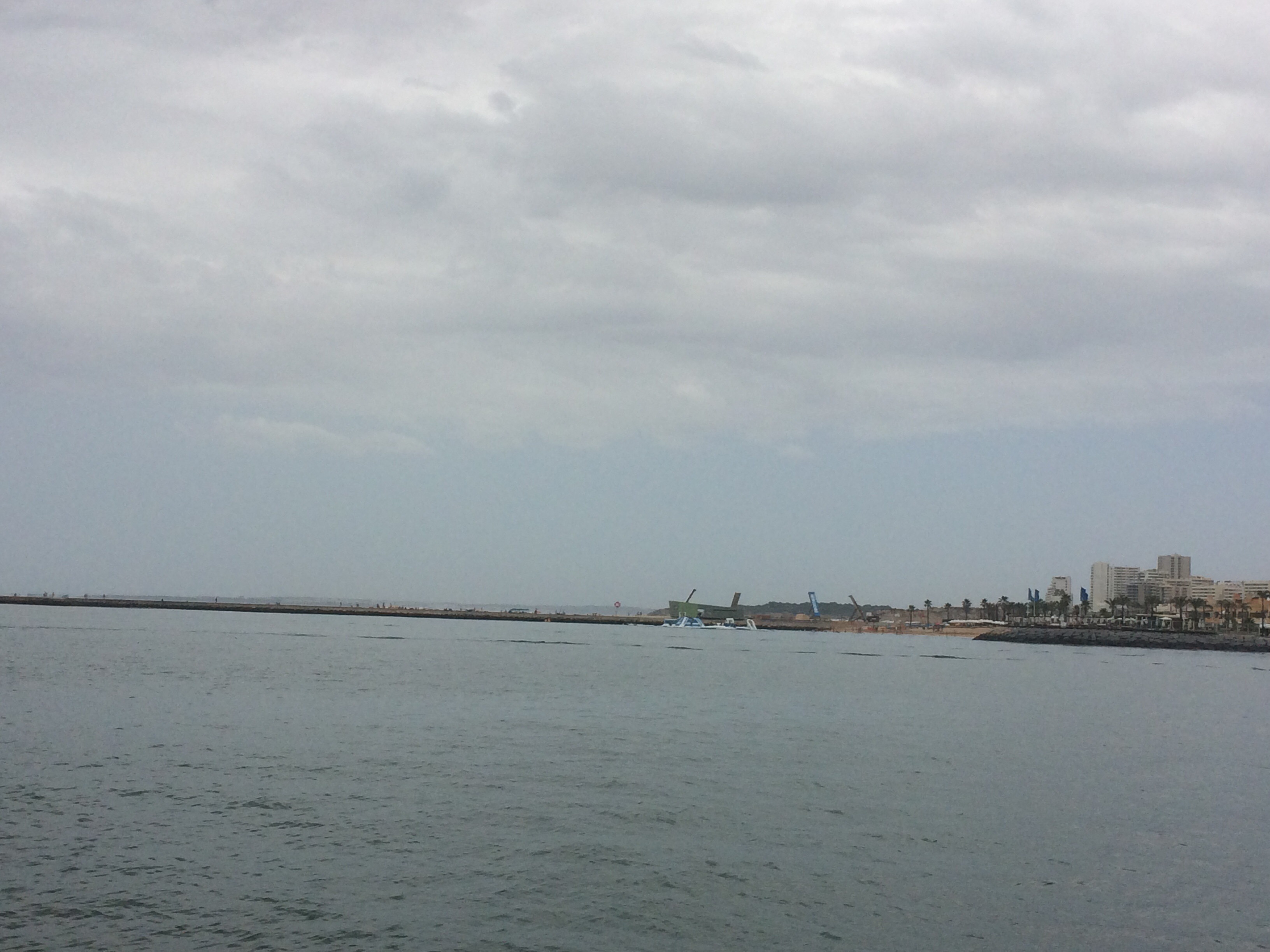 Portimao, Portugal Disigt, regnskur, klibbigt, sval mycket svag vind, molnligt. Hade vi varit i Sverige hade jag sagt åska på G. Men här i södern stämmer inte de väderaningarna.