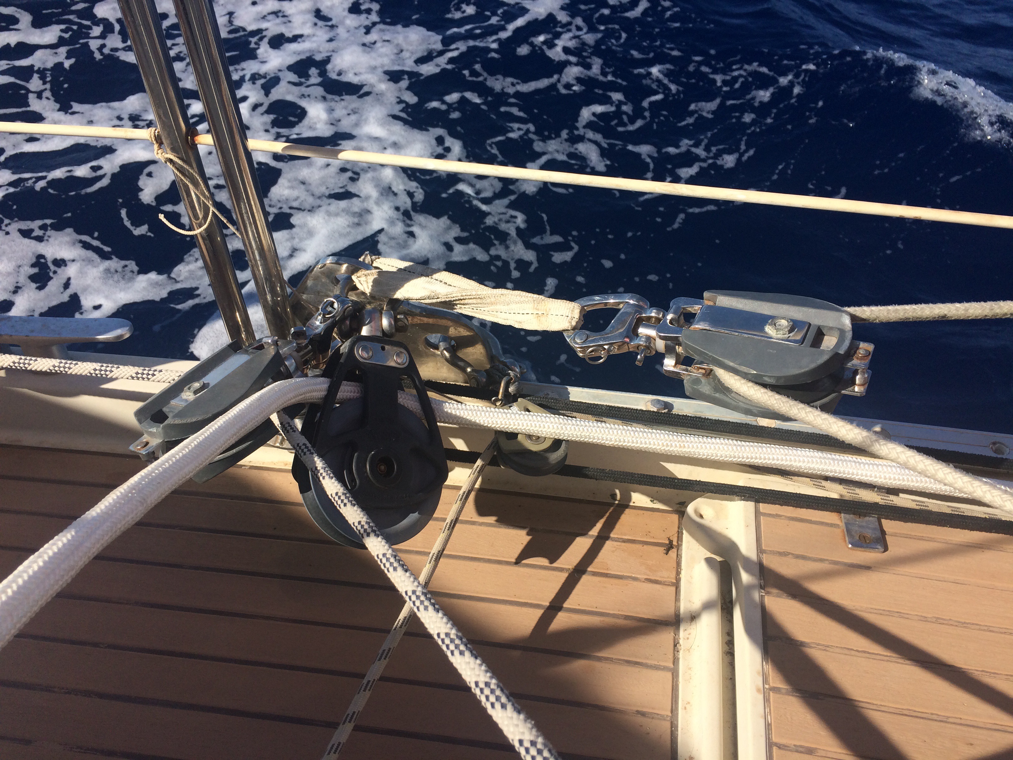 Jag har första vakten, vind fortfarande från nordost fortsatt svag ca 5 m/s. Ingen prognos pekar på ökad vindstyrka så vi har beslutat att segla så länge det går med gennackern och mesanen. Mesanstagseglet tog vi ner strax innan middagen då den stal vinden från gennackern. I stället rullade vi ut mesanseglet.