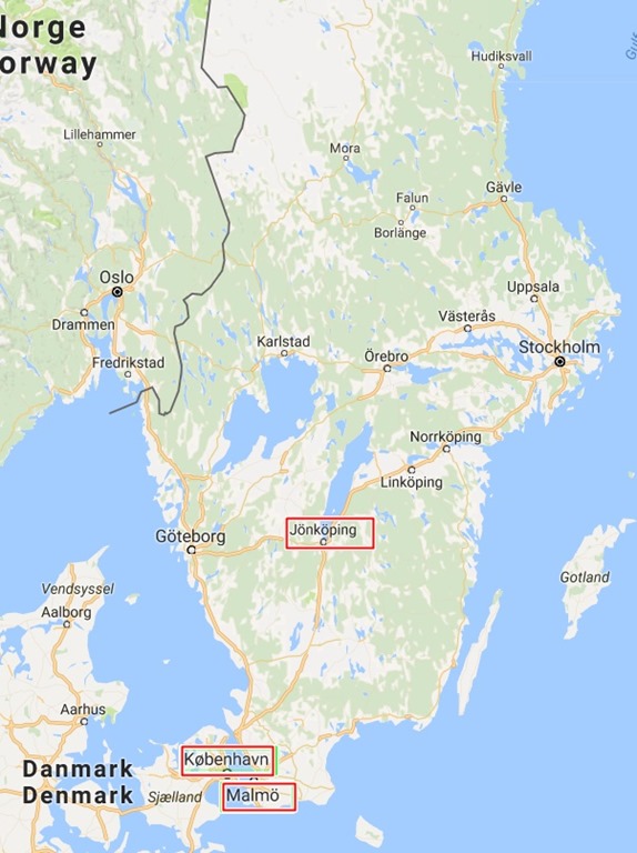 On the 23d we began our odyssee north. We took place on the train to Jönköping, that is about 300 km north from Malmö and Copenhagen,
